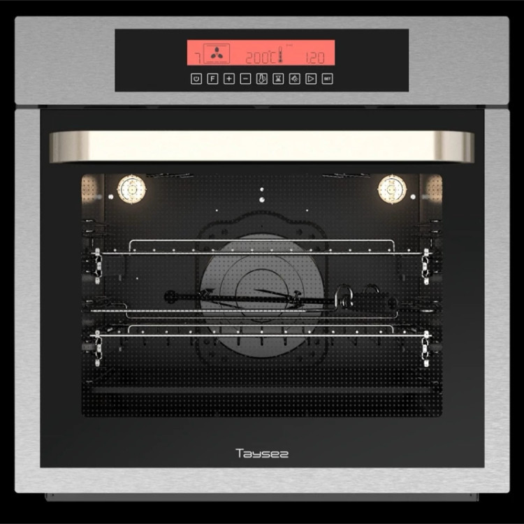 13 برنامه پخت اتوماتیک و غیر اتوماتیک برنامه یخ زدایی گرید انرژیA فن خنک کننده فن گردش هوای گرم جهت پخت یکنواخت قفل کودک سیستم کنترل اتوماتیک دمای داخل فر دارای جوجه گردان دارای محفظه لعابی داخل فر دارای دو جفت ریل تلسکوپی دارای دو عدد شلف با قابلیت تنظیم ارتفاع در 5 حالت گنجایش 67 لیتر ابعاد 60در60 مجهز به 4 المنت برقی و توان حرارتی 4200 وات حداکثر تولید دما 250 درجه سانتیگراد روشنایی داخلی قابلیت نظافت آسان دارای نشانگر ساعت صفحه نمایش دیجیتال لمسی مجهز به سنسور پخت گوش درب جدا شونده با شیشههای کشویی مجهز به لولای درب با قابلیت تنظیم فضای باز و بسته شدن دارای شیشه سه جداره آنتی شوک حرارتی جهت جلوگیری از اتلاف دما 24 ماه گارانتی نصب رایگان سنسور پخت گوشت پنل لمسی لامپ داخل فر